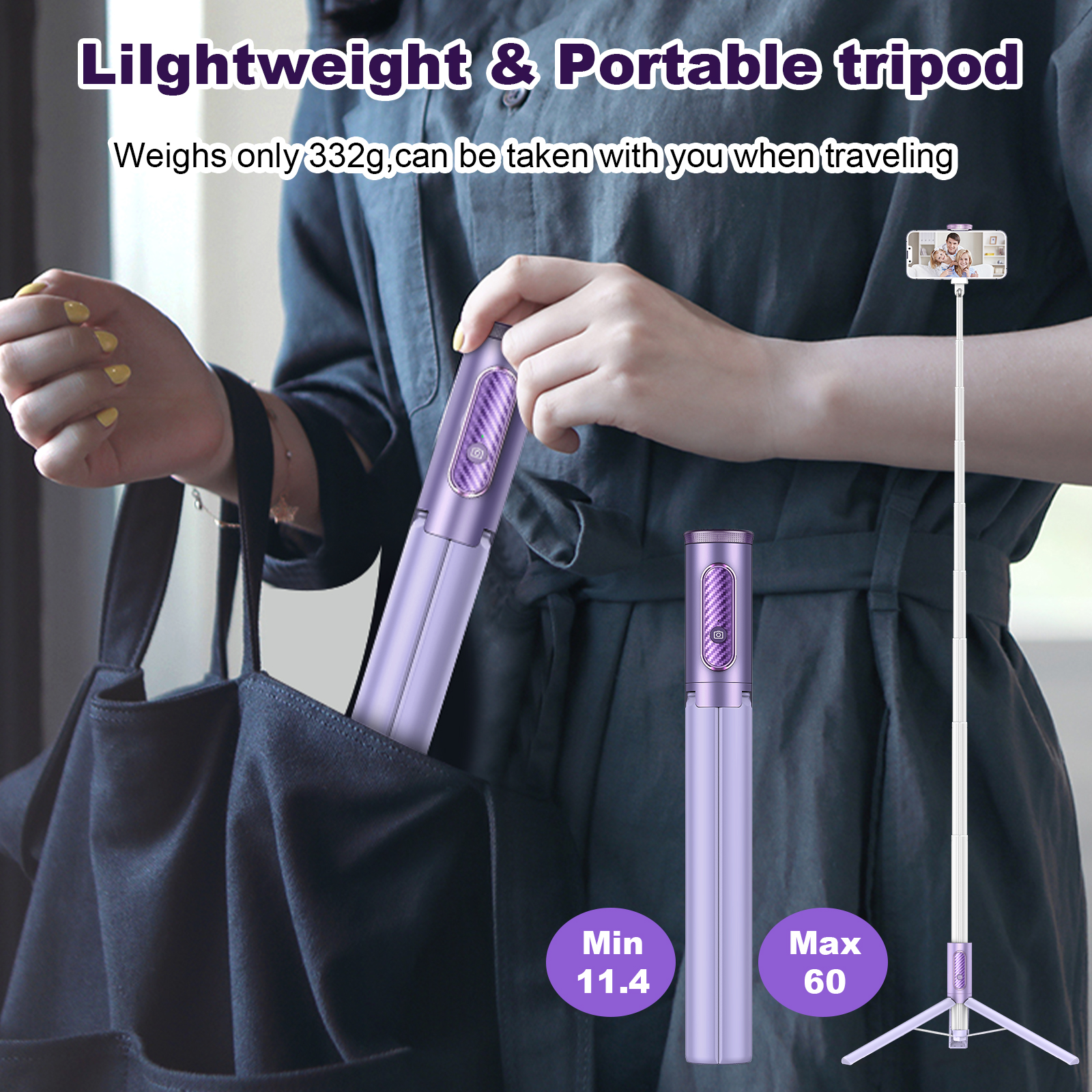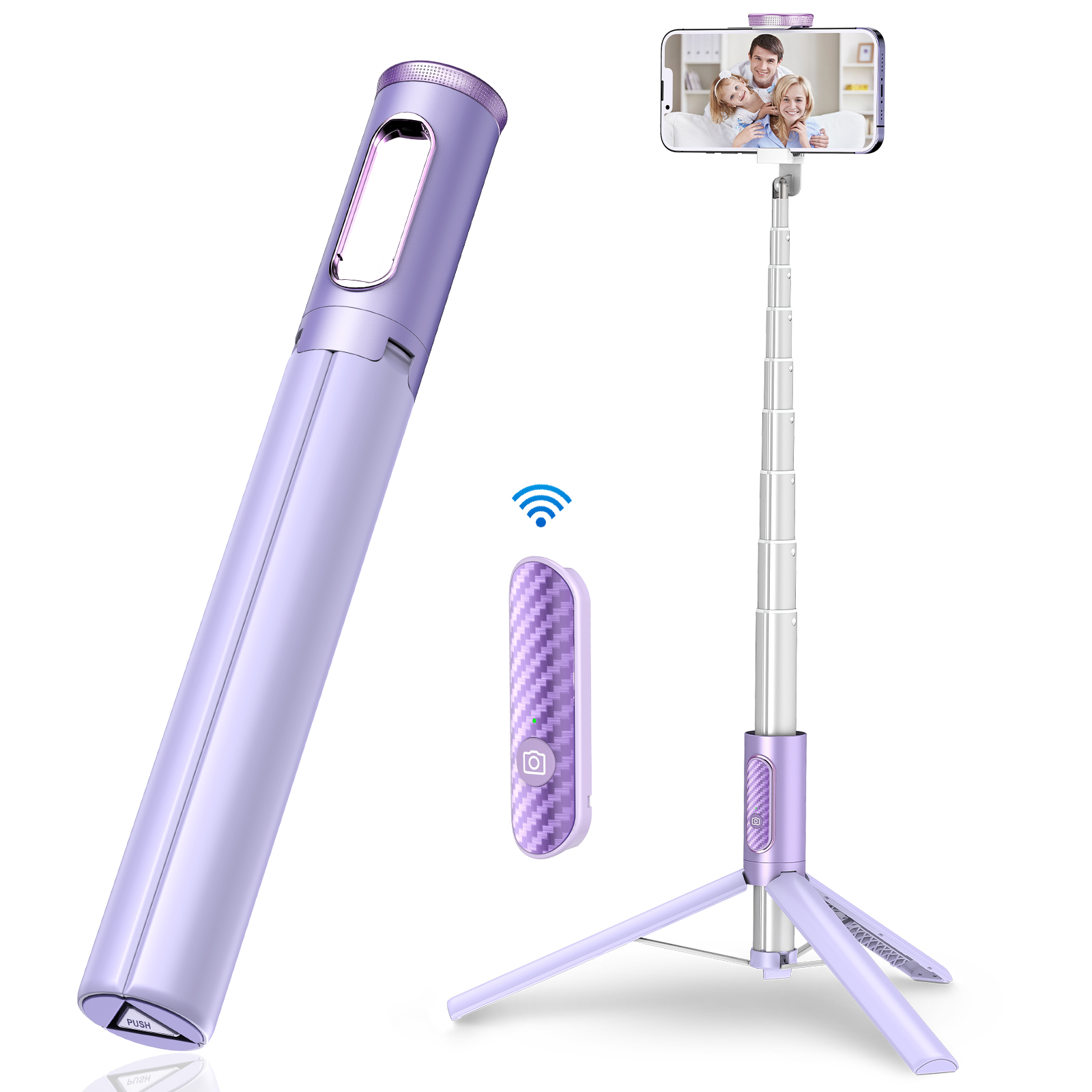 TONEOF 152cm Cell Phone Selfie Stick Tripod, Tripod Stand All-in-1 with Integrated Wireless Remote, Portable,Lightweight,Extendable Phone Tripod for 4''-7'' iPhone and Android(Purple)