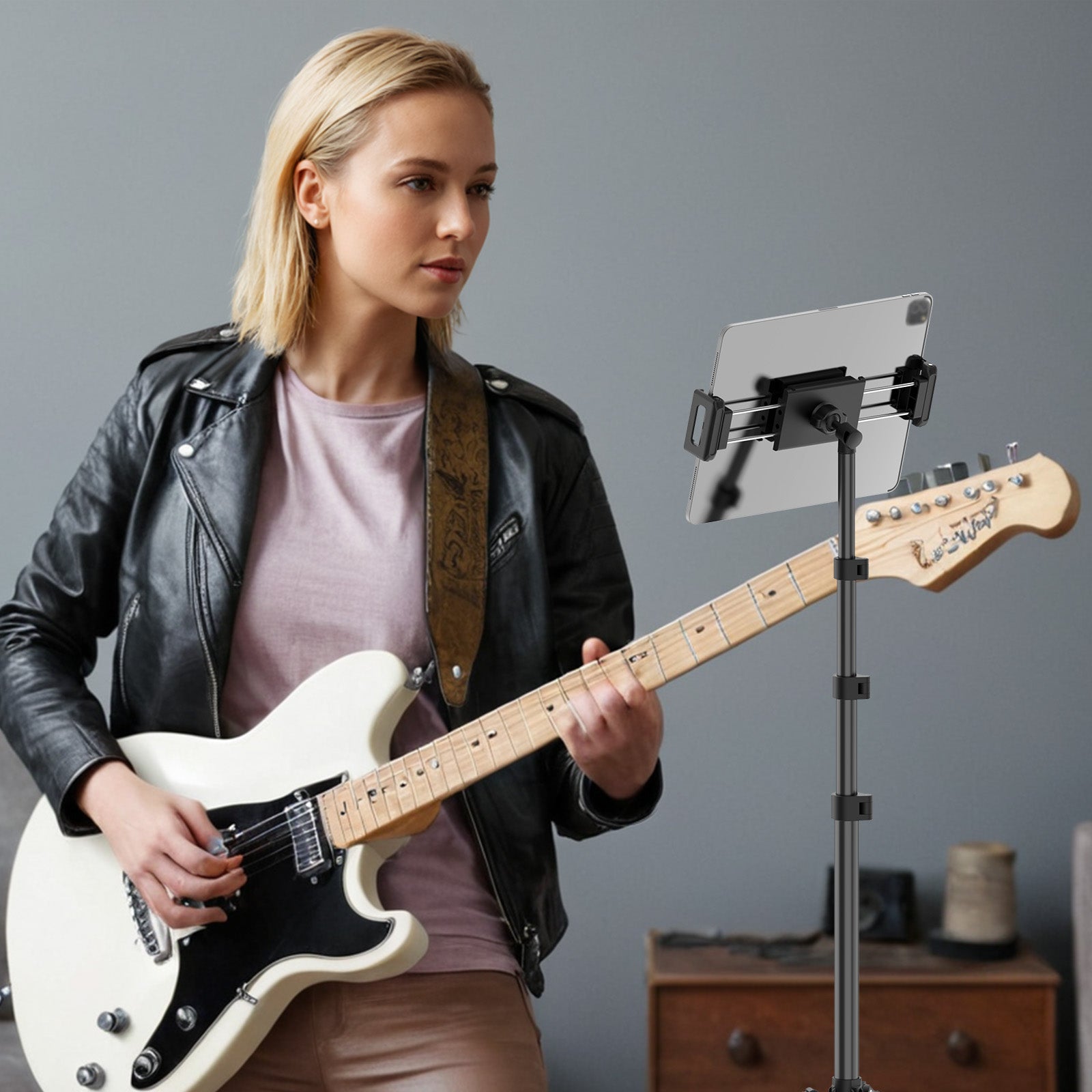 Aluminum Material & Sturdy: This tablet tripod stand is made of high-quality aluminum alloy material, which is sturdy enough to support the heavy smartphones, tablets. Reinforced triangular structure makes the tripod stand more stable and more resistant to wind when used outdoors.