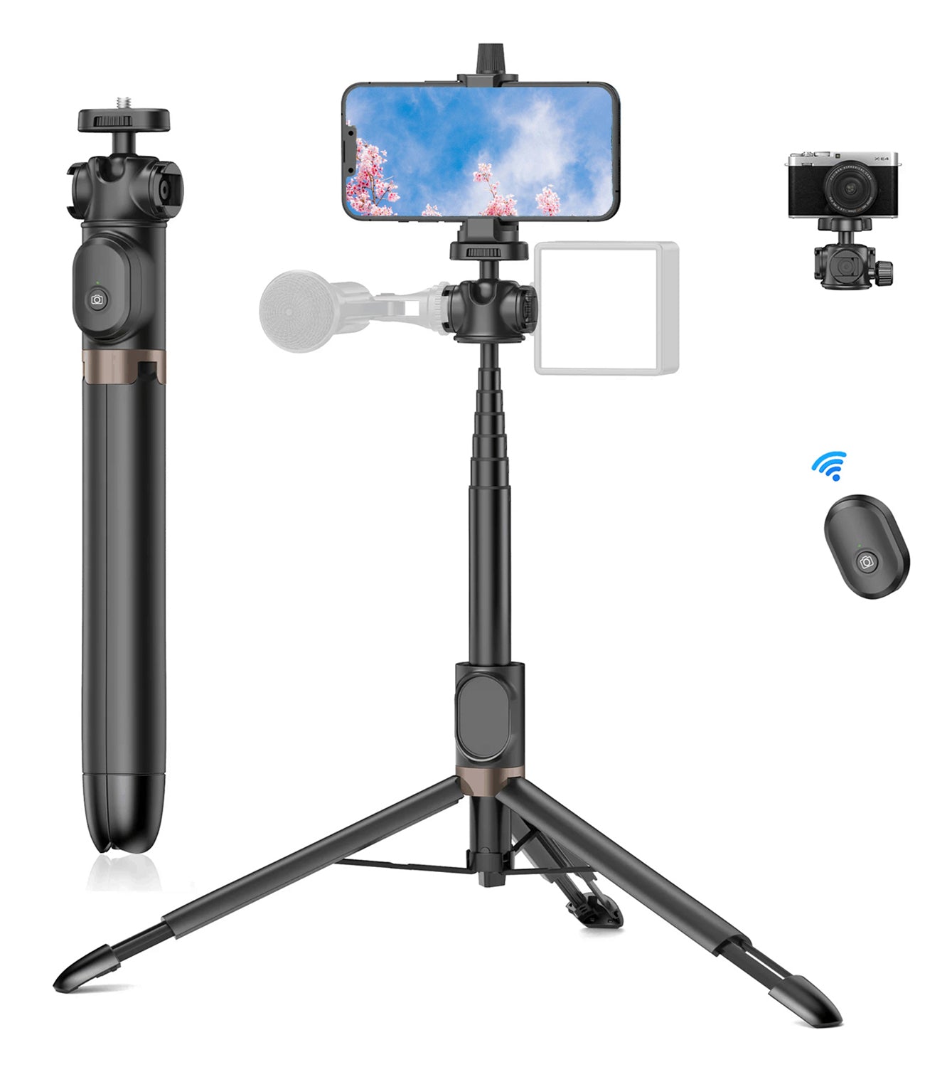 TONEOF Phone Camera Tripod with 1/4” Screw,60" Phone Tripod Stand with Magnetic Remote,Portable Tripod Holder for iPhone/Small Camera/DSLR/Android Phone