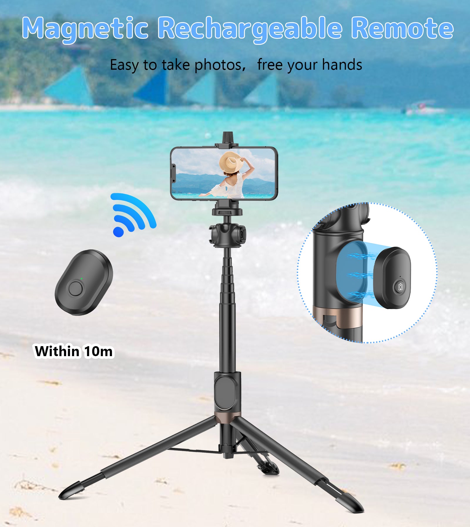 - [Magnetic Charging Remote Control] The remote control for flexible phone tripod is magnetically designed to quickly attach to the remote control notch to prevent loss,and can be charged by Type-C cable. On the other hand, the travel tripod can be quickly paired and is very easy to operate. The magnetic remote control is compatible with IOS 7.0+ & Android 5.0+, and you can take pictures freely within 10 meters after successfully connecting with cell phone.